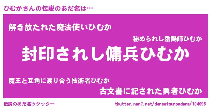 | 意味不明あだ名 | 『自称ひむか』『めかぶ科ひむか属』 |