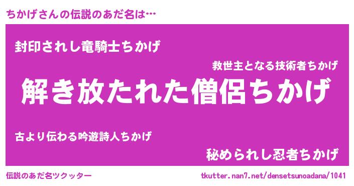 | ヒーロー風カッコイイあだ名 | 『サイバー戦士チカゲ』『炎刃騎士チカ』 |