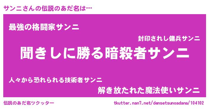 | 男性向けラノベタイトル風あだ名 | 『サンニスレイヤー』 |