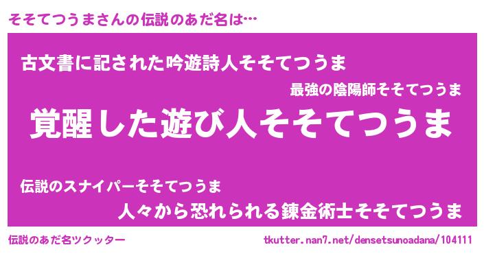 | ヒーロー風カッコイイあだ名 | 『炎刃騎士ソソ』『ネオソソテツウマ』 |