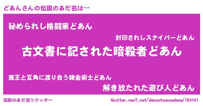| ファンタジー風あだ名 | 『ドアディッシュ』『エターナルドアンー』 |