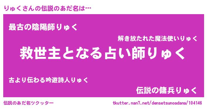 | ヒーロー風カッコイイあだ名 | 『慈愛の使者りゅく』『仮面リュダー』 |