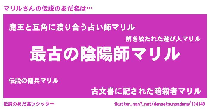 | 女子向けラノベタイトル風あだ名 | 『首の姫と首なしマリル』『闇のマリル』 |