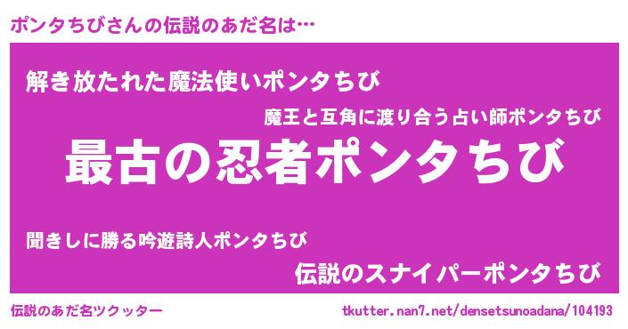 | 意味不明あだ名 | 『自称ポンタちび』『ペロリンポンタちび』 |