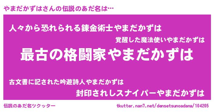 | ヒーロー風カッコイイあだ名 | 『サイバー戦士ヤマダカズハ』 |