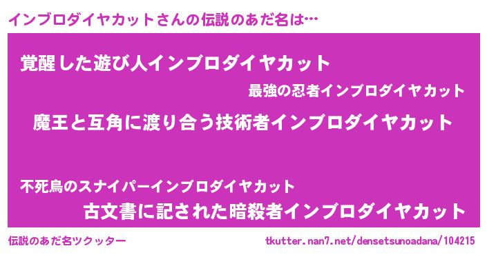 | 意味不明あだ名 | 『住所不定無職インブロダイヤカット(7歳)』 |