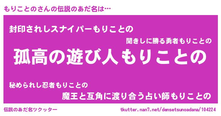| ヒーロー風カッコイイあだ名 | 『暗黒騎士モリ』『スーパーモリコトノ』 |