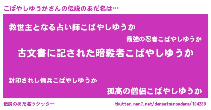 | 意味不明あだ名 | 『永久保存こばやしゆうか』 |