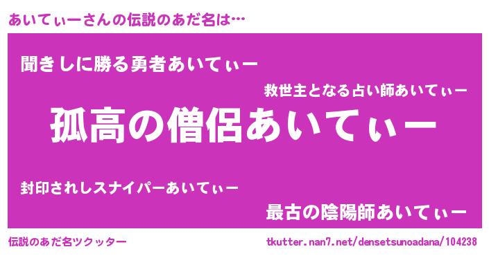 | ヘコむあだ名 | 『あいっぺ』『あいてぃー(震え声)』 |