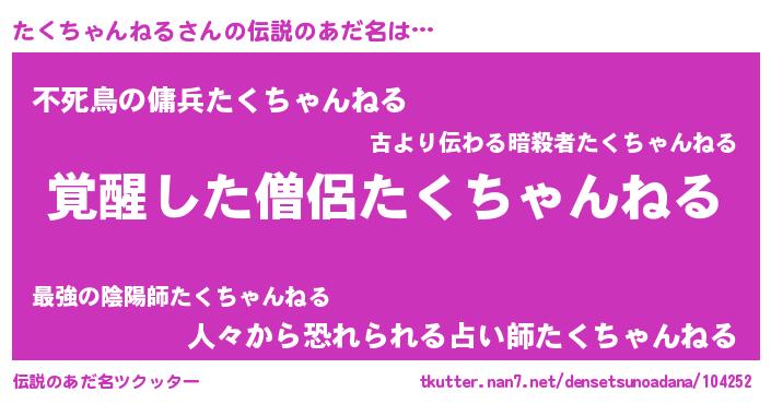 | 意味不明あだ名 | 『とにかく怪しいたくちゃんねる』 |