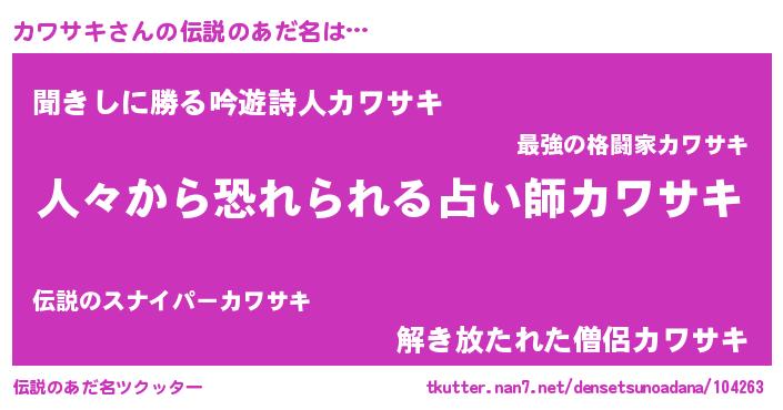 | 意味不明あだ名 | 『住所不定無職カワサキ(50歳)』 |