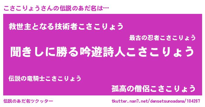 | ヒーロー風カッコイイあだ名 | 『ネオコサコリョウ』『仮面コサダー』 |
