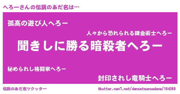 | ヒーロー風カッコイイあだ名 | 『ネオヘロー』『魔戒騎士ヘロ』 |
