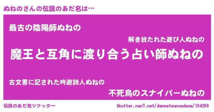 | ヒーロー風カッコイイあだ名 | 『仮面ヌネダー』『慈愛の使者ぬねの』 |