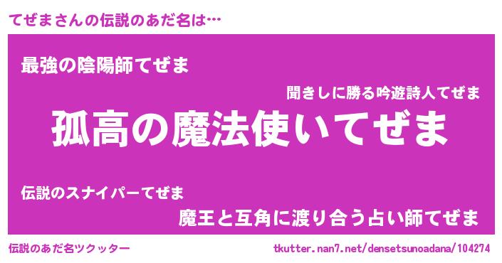 | 意味不明あだ名 | 『自称てぜま』『とにかく怪しいてぜま』 |