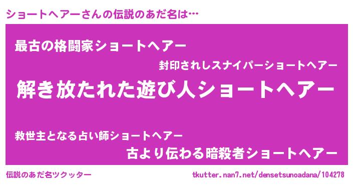 | 男性向けラノベタイトル風あだ名 | 『ショートヘアーに滅ぼされるだけの簡単なお仕事です』 |