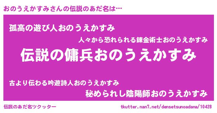 | 意味不明あだ名 | 『住所不定無職おのうえかすみ(53歳)』 |