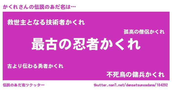 | ヒーロー風カッコイイあだ名 | 『ウルトラかくれマン』『スーパーカクレ』 |