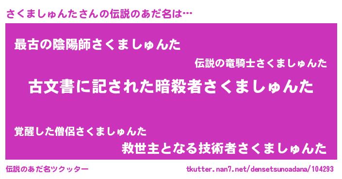| 男性向けラノベタイトル風あだ名 | 『さくましゅんたに滅ぼされるだけの簡単なお仕事です』 |