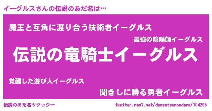 | 男性向けラノベタイトル風あだ名 | 『イーグルスの憂鬱』『緋弾のイーグルス』 |