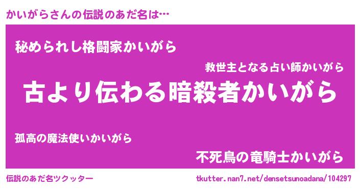 | 胡散臭い通販商品みたいなあだ名 | 『来世でも幸せになれる健康食品…その名も「かいがら」』 |