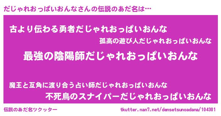 | 意味不明あだ名 | 『住所不定無職だじゃれおっぱいおんな(71歳)』 |