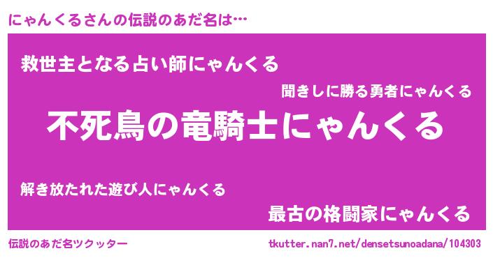 | ヒーロー風カッコイイあだ名 | 『スーパーニャンクル』『仮面ニャダー』 |