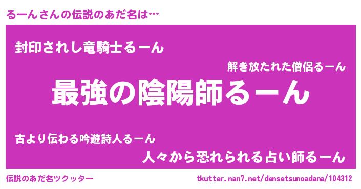 | ファンタジー風あだ名 | 『エターナルルーンー』『ルーフェル』 |