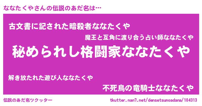 | 意味不明あだ名 | 『ななたくやフォーエバー』 |