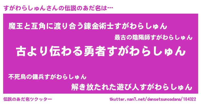 | 意味不明あだ名 | 『永久保存すがわらしゅん』 |
