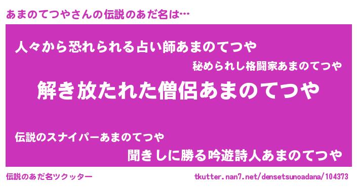 | 男性向けラノベタイトル風あだ名 | 『あまのてつやの嫁は女の子じゃないと思った?』 |