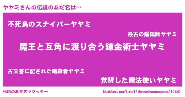 | 女子向けラノベタイトル風あだ名 | 『ヤヤミ恋絵巻』『ヤヤミは平凡を望む』 |