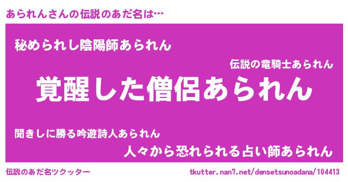 | 意味不明あだ名 | 『とにかく怪しいあられん』 |
