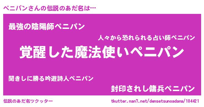 | ヒーロー風カッコイイあだ名 | 『炎刃騎士ペニ』『ウルトラペニパンマン』 |