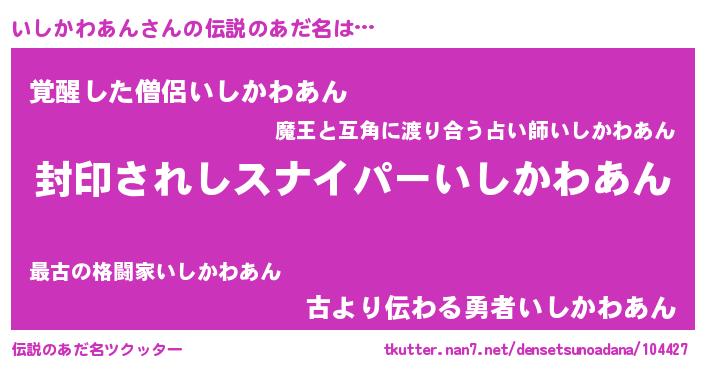 | ヒーロー風カッコイイあだ名 | 『スーパーイシカワアン』『銀牙騎士イシ』 |