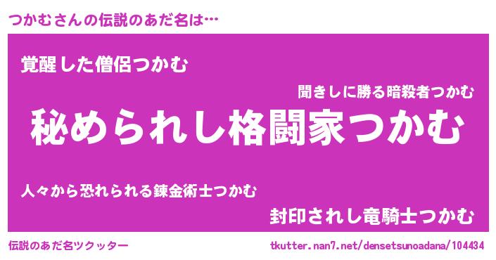 | ヒーロー風カッコイイあだ名 | 『ウルトラつかむマン』『幻影騎士ツカ』 |