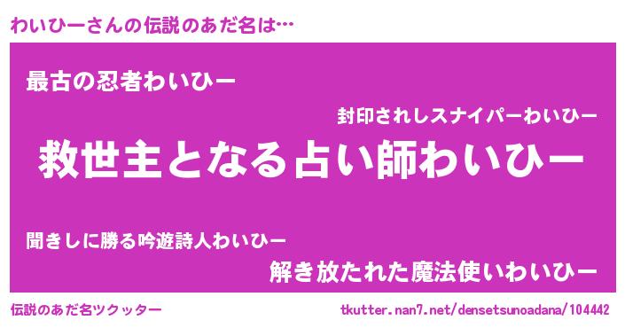 | ヒーロー風カッコイイあだ名 | 『天空の使者わいひー』『仮面ワイダー』 |