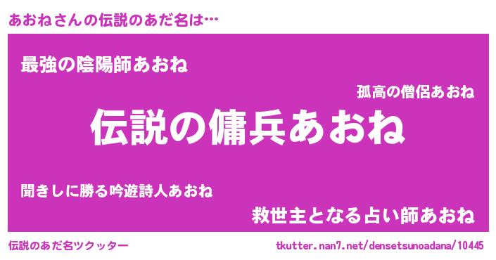 | 男性向けラノベタイトル風あだ名 | 『アオネスレイヤー』『魔弾の王とあおね』 |
