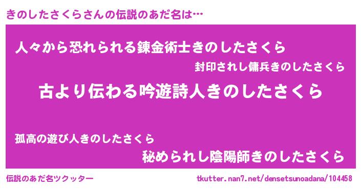 | 意味不明あだ名 | 『永久保存きのしたさくら』 |