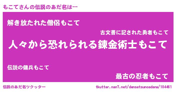 | 意味不明あだ名 | 『眠気覚ましガムもこて味』『自称もこて』 |