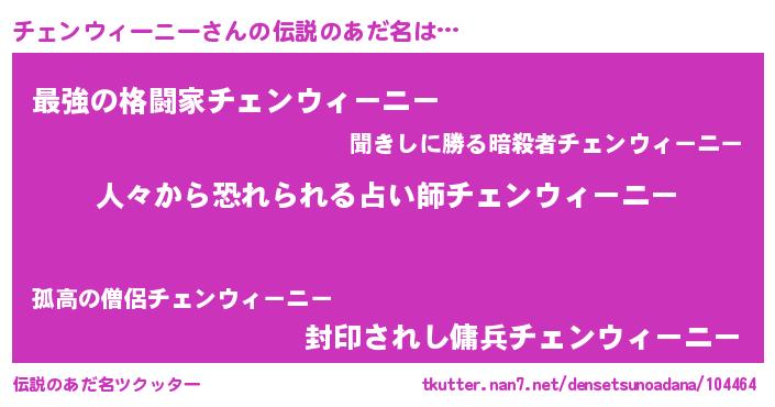 | ヒーロー風カッコイイあだ名 | 『友情の使者チェンウィーニー』 |