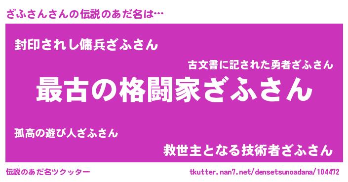 | ポケモン風あだ名 | 『ザフセウス』『ザフサダネ』 |