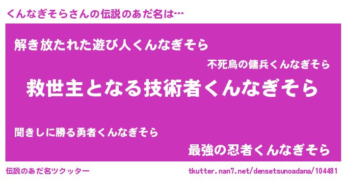 | 男性向けラノベタイトル風あだ名 | 『くんなぎそらに滅ぼされるだけの簡単なお仕事です』 |