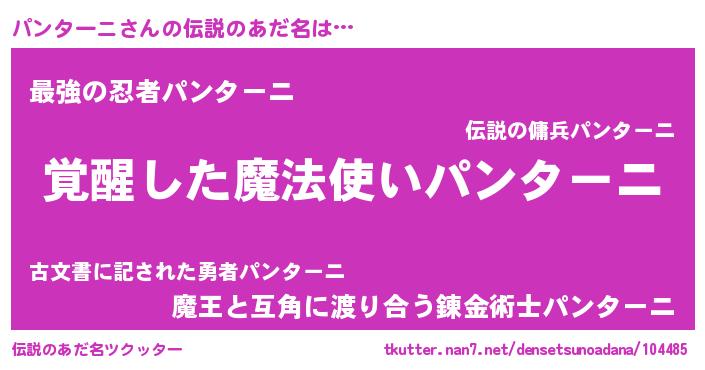 | ヒーロー風カッコイイあだ名 | 『最強戦士パンターニ』『幻影騎士パン』 |