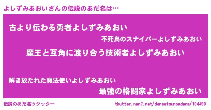 | 意味不明あだ名 | 『眠気覚ましガムよしずみあおい味』 |