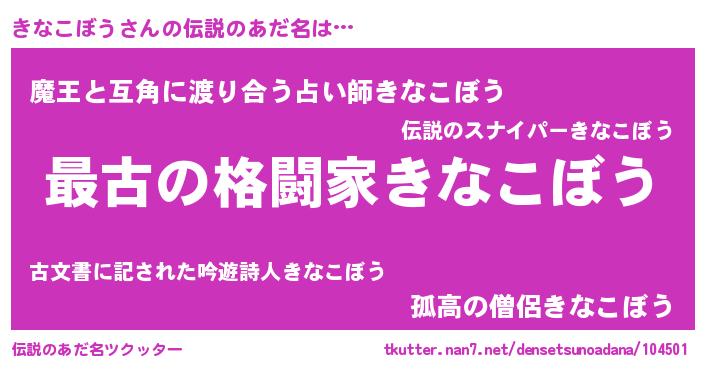 | 意味不明あだ名 | 『住所不定無職きなこぼう(12歳)』 |
