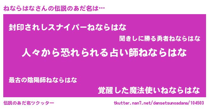 | ヒーロー風カッコイイあだ名 | 『友情の使者ねならはな』『天弓騎士ネナ』 |