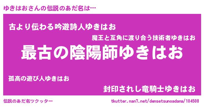 | 意味不明あだ名 | 『なめこ科ゆきはお属』 |