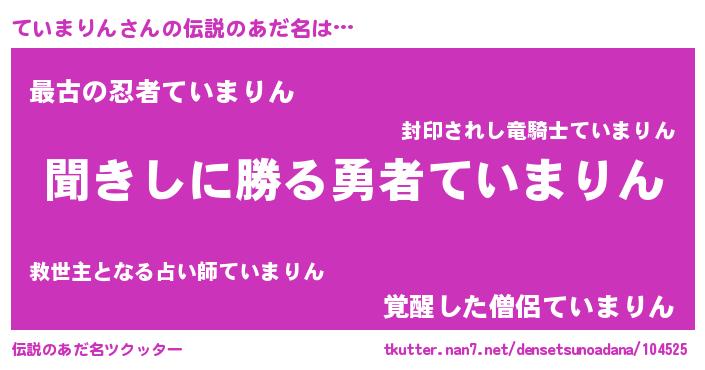 | 意味不明あだ名 | 『自称ていまりん』『永久保存ていまりん』 |
