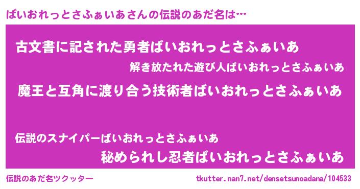 | ヘコむあだ名 | 『ばいおれっとさふぁいあ(小並感)』 |
